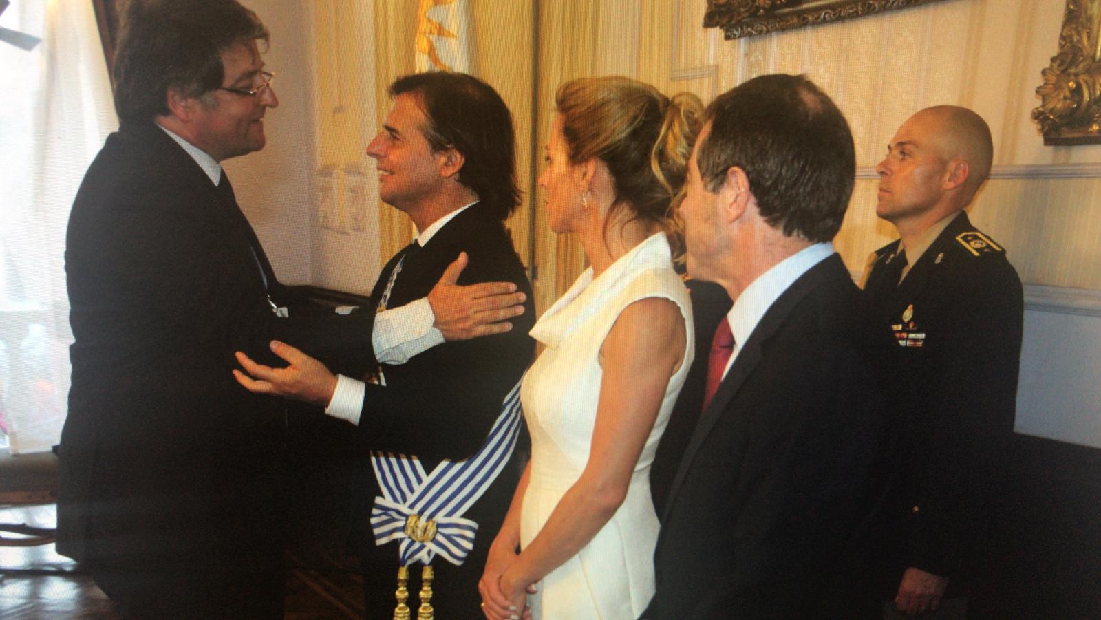 Este domingo 1 de marzo, luego de la toma de posesión en Plaza Independencia, el Presidente, Luis Lacalle Pou, saludó a los jefes de delegación, embajadores y funcionarios.